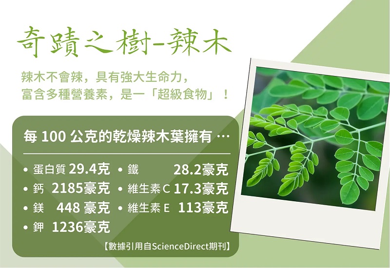 辣木堅韌的生命力,種植過程不需要太多水份即能生長,聯合國也認可, 種辣木可以實現永續目標的價值。地球科學和氣候變遷期刊的研究指出,辣木具有卓越的固碳能力,有助於減緩全球暖化,為我們的地球帶來一絲清涼。